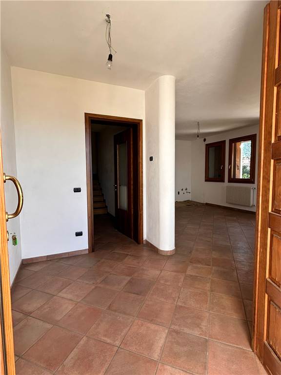 L'abitazione è disposta su due livelli fuori terra composta da: ingresso, spaziosa cucina-soggiorno con accesso al portico, bagno con vasca e doccia e altre due stanze da personalizzare con la possibilità di ampliare la zona giorno; al piano superiore: ampio corridoio, tre camere matrimoniali e bagno. Al piano seminterrato locale adibito a centrale termica.