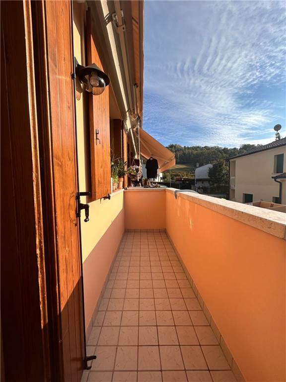 Proponiamo in vendita a Follina in località La Bella in una posizione tranquilla ed in un complesso di sole quattro unità, appartamento al piano primo con accesso indipendente, composto da ampio soggiorno-cucina con terrazzo, camera matrimoniale, camera singola e un bagno. Completano la proprietà un posto auto esterno ed un garage nel piano interrato.
