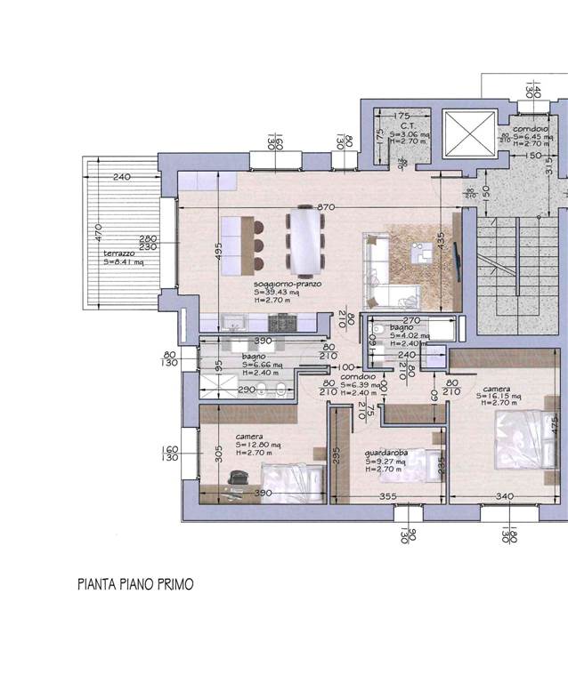 Proponiamo in centro a Pieve di Soligo, in elegante palazzina di nuova costruzione, APPARTAMENTO 3 CAMERE AL PRIMO PIANO. La zona giorno è composta da soggiorno open-space di circa 40 mq con cucina a vista ed accesso ad un ampio terrazzo di 9 mq. Nella zona notte troviamo ampio disimpegno, camera matrimoniale, camera doppia, bagno, studio/guardaroba e secondo bagno. Possibilità di scelta garage di varie metrature.