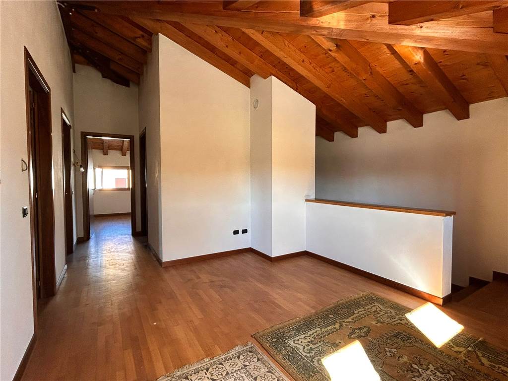 L'abitazione è disposta su due livelli fuori terra composta da: ingresso, spaziosa cucina-soggiorno con accesso al portico, bagno con vasca e doccia e altre due stanze da personalizzare con la possibilità di ampliare la zona giorno; al piano superiore: ampio corridoio, tre camere matrimoniali e bagno. Al piano seminterrato locale adibito a centrale termica.
