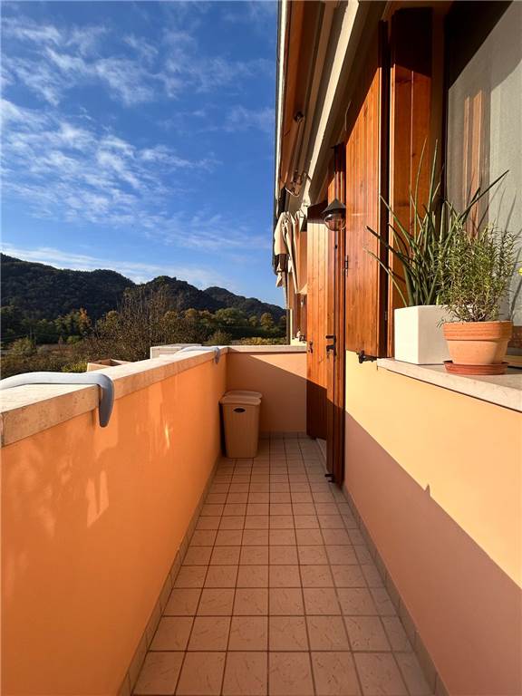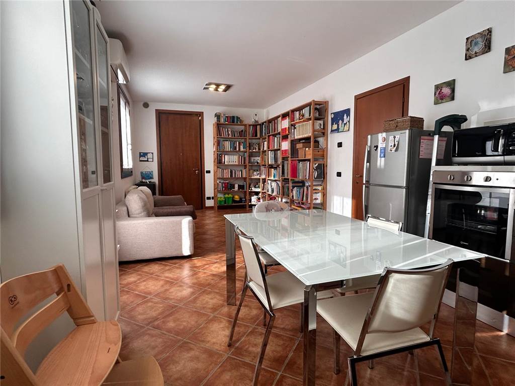 Proponiamo in vendita a Follina in località La Bella in una posizione tranquilla ed in un complesso di sole quattro unità, appartamento al piano primo con accesso indipendente, composto da ampio soggiorno-cucina con terrazzo, camera matrimoniale, camera singola e un bagno. Completano la proprietà un posto auto esterno ed un garage nel piano interrato.