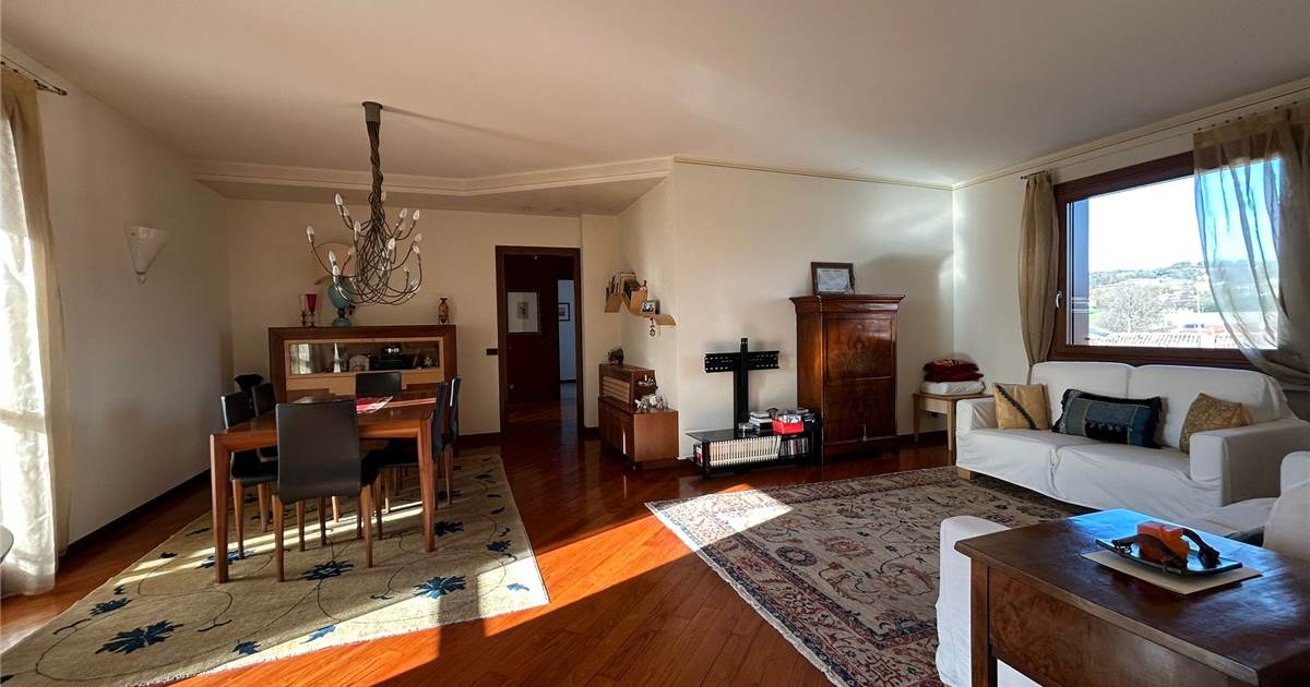 L'immobile è composto da ingresso, ampio soggiorno-sala da pranzo con vista sul colle della Tombola, cucina abitabile e acceso alla terrazza, nella zona giorno troviamo 2 camere matrimoniali, bagno con doccia e vasca, una camera singola che attualmente è utilizzata come lavanderia e ripostiglio.